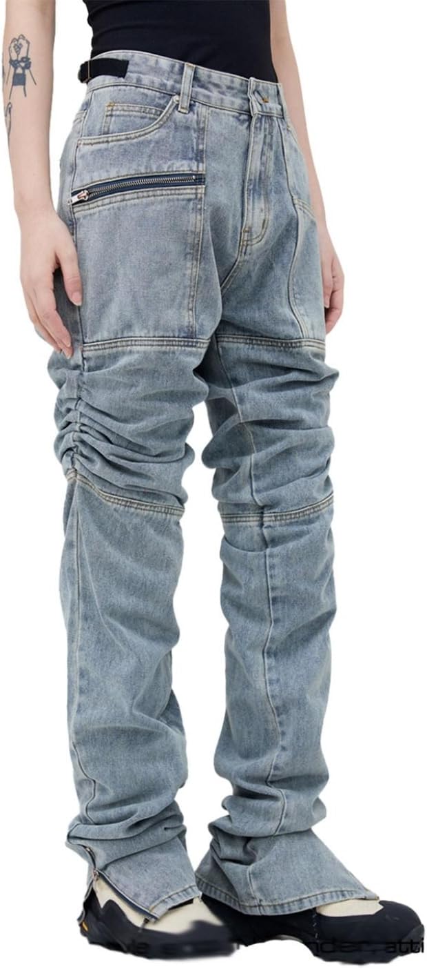 デニムパンツ ジーンズ メンズ スキニーパンツ 細身 ギャザー ジップ裾 ラッパ ロングパンツ 大人 お洒落 オトコ ズボン オリジナル パッチワーク 厚い 立体裁断 軽量 春夏秋 ビター系 アメカジ